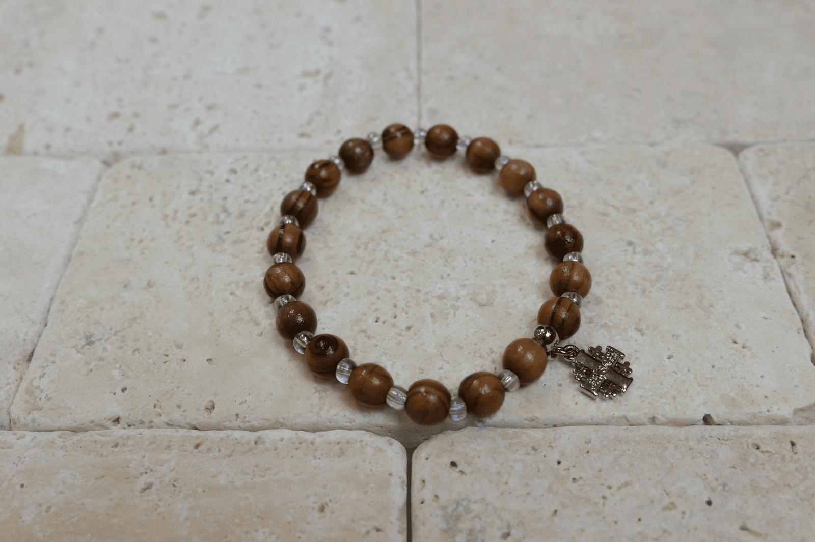 Bransoletka z drzewa oliwnego z Krzyżem Jerozolimskim