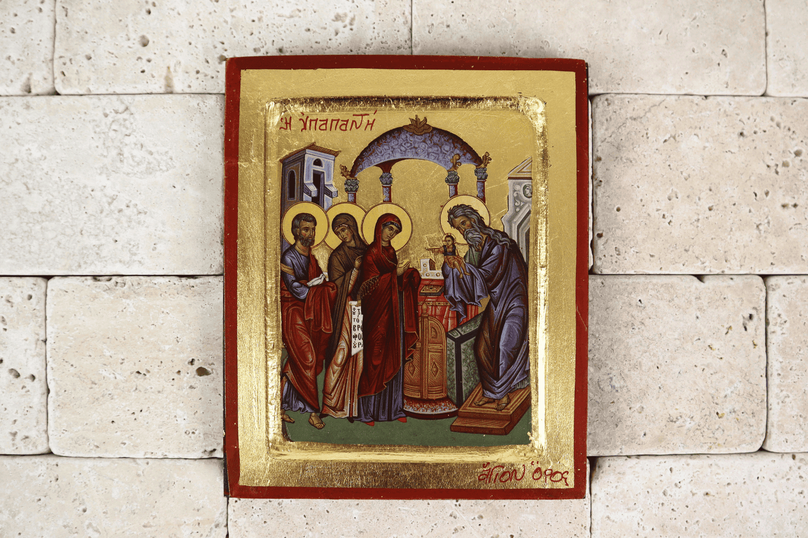 Ikona przedstawia Ofiarowanie Pana Jezusa w Świątyni w Jerozolimie.