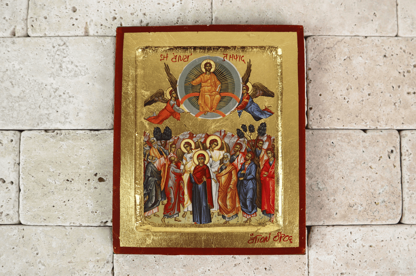 Ikona przedstawia Wniebowstąpienie Pańskie.